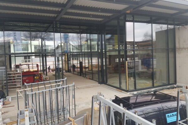 | ARBEITEN: | Glasfassade Metallfassade Alu Fenster und Türen |